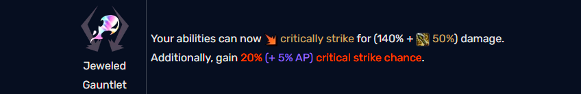 Champions who deal a lot of burst damage would benefit from taking the Jeweled Gauntlet, as it empowers your abilities to deal crit damage. When paired with any champion that has burst and low cooldowns, your abilities can deal a lot of additional damage. This will obviously help you win rounds, and this will be easier against squishier team comps.