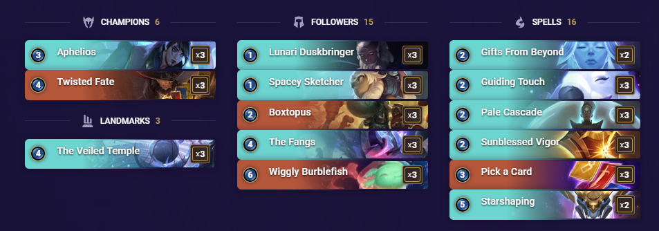 What that means is that the only other decks really capable of dealing with the Star Spring-based win condition are the big Targon invoke decks, all of which have been slimming down with the advent of Aphelios.