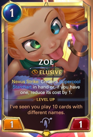 With Zoe’s Nexus Strikes she adds a Supercool Starchart to your hand. Getting one strike in gives you an Invoke for later and is decent value for a one drop.
