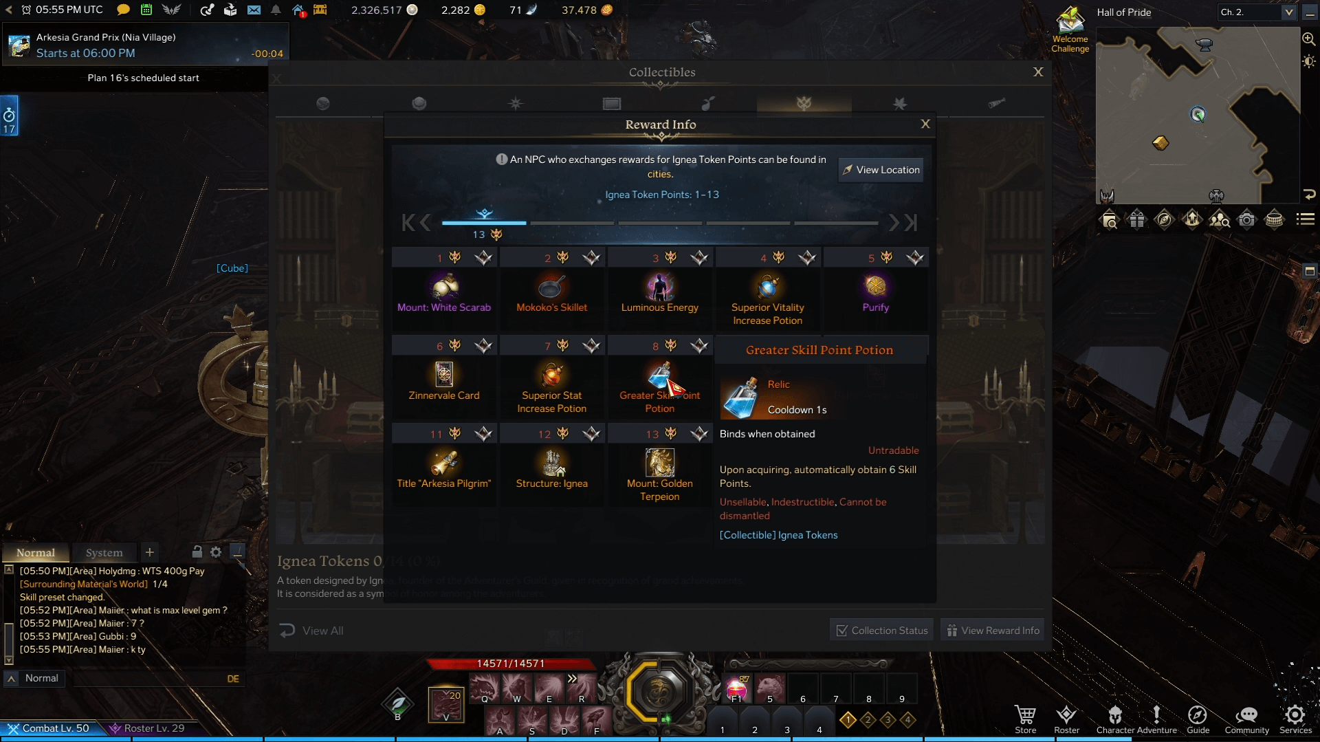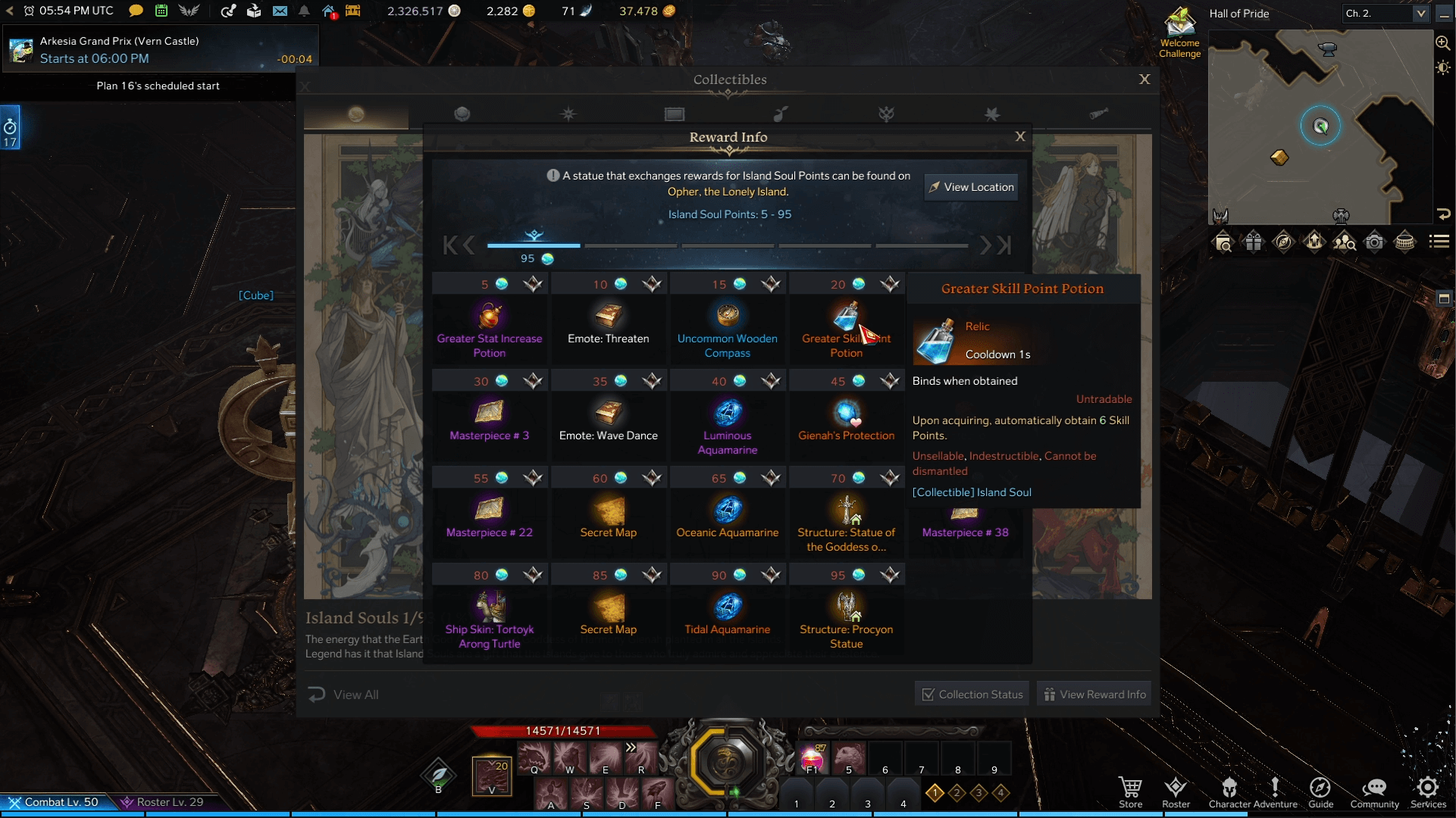 There’s no MMO without an almost endless amount of items to collect. Island Souls, Giant’s Hearts, Omnium Stars and Ignea Tokens are all collectibles that will reward you with a total of 36 Skill Points.