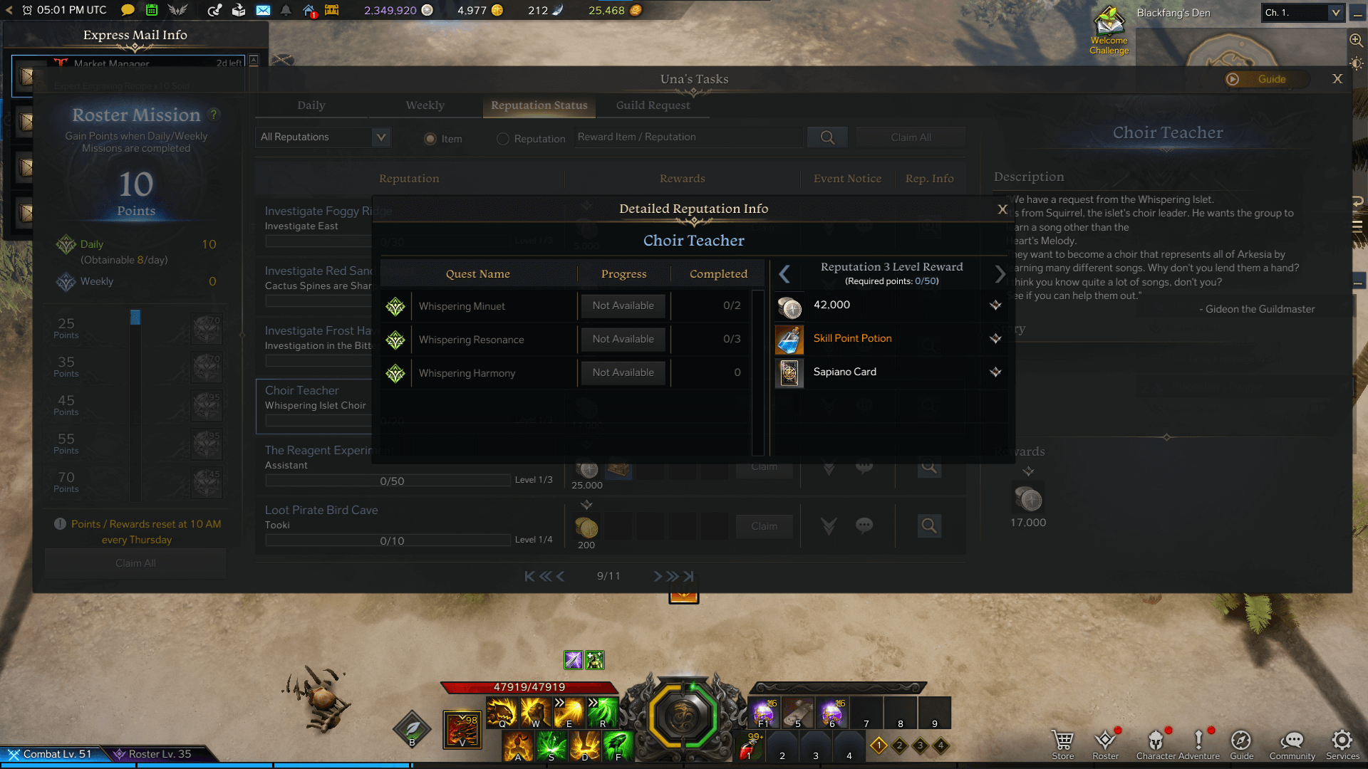Usually in-game currencies like Pirate Coins or Gold are the regular reward of Una’s Task, but surprisingly there is a task that gives a final Skill Point Potion.