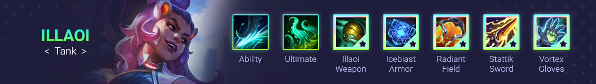 Iceblast Armor. A strong AOE weapon that will help keep you and your allies alive. As Illaoi is a tank, the bonus tanky stats are quite useful.