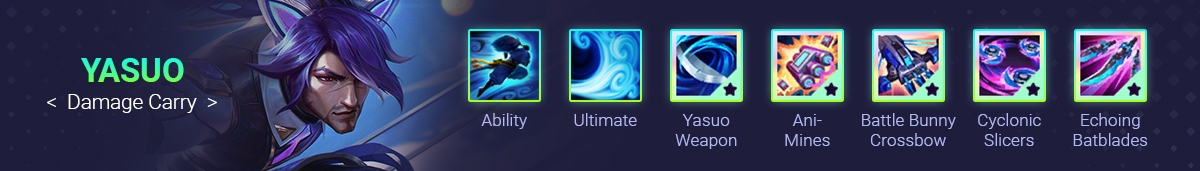 Ani-Mines. Drops mines as you move around the map. Yasuo needs to move around to become empowered, so these two go hand in hand.