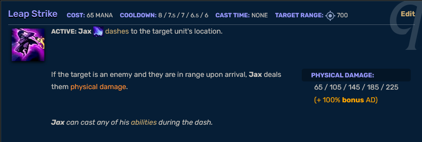In this example clip, I am rather ahead of the enemy and can safely farm between the two towers. Thanks to Jax’s kit, I am also able to easily escape any engagement that might come to me.