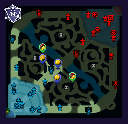 We’ve got wards placed near and afar on both sides of the map to ensure that if an enemy tries to flank your team or tries to catch somebody of guard, your team will know about it and you would be able to react to it in time.