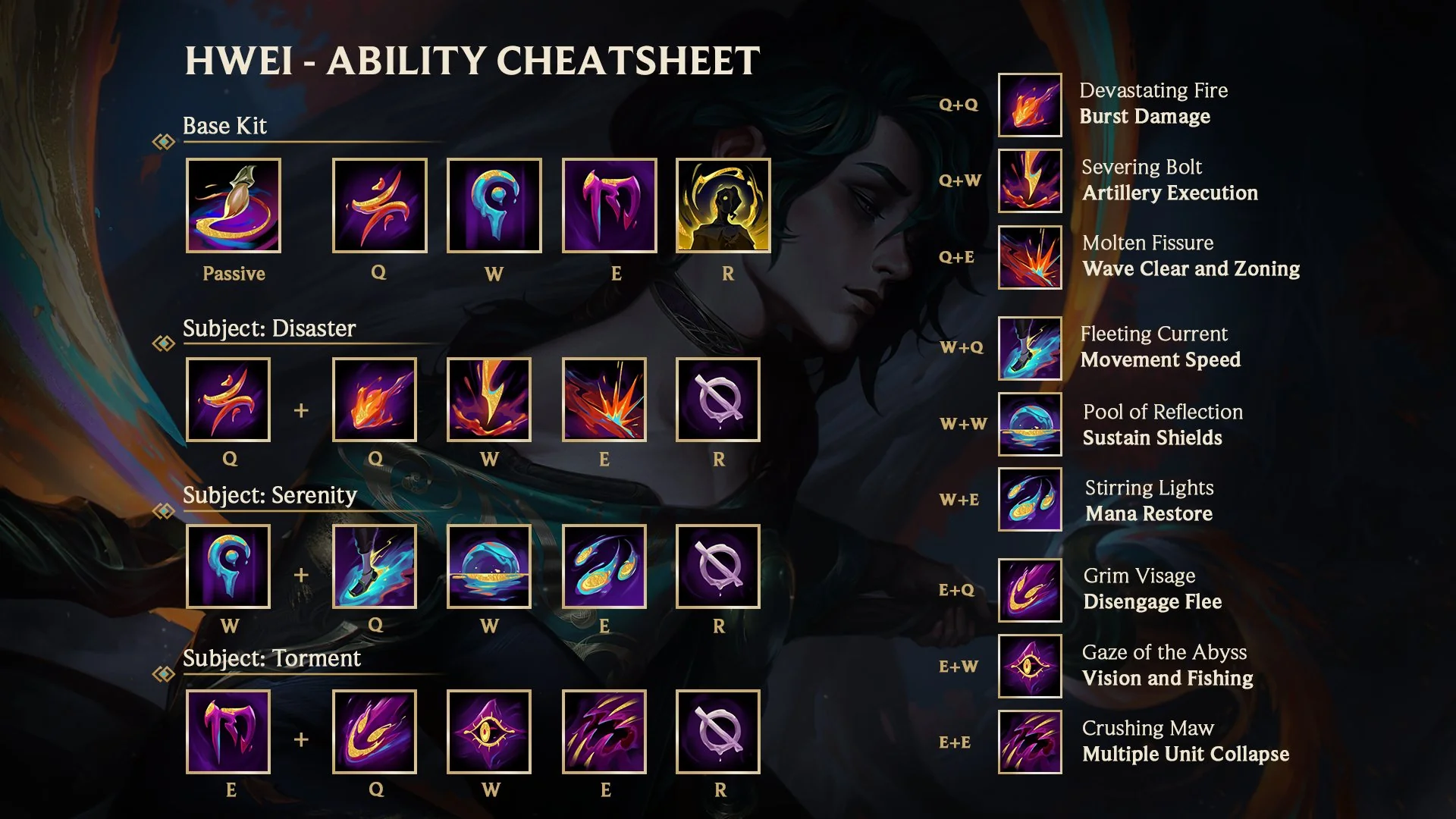 - Hwei paints visions of serenity that provides utility for himself and allied champions.