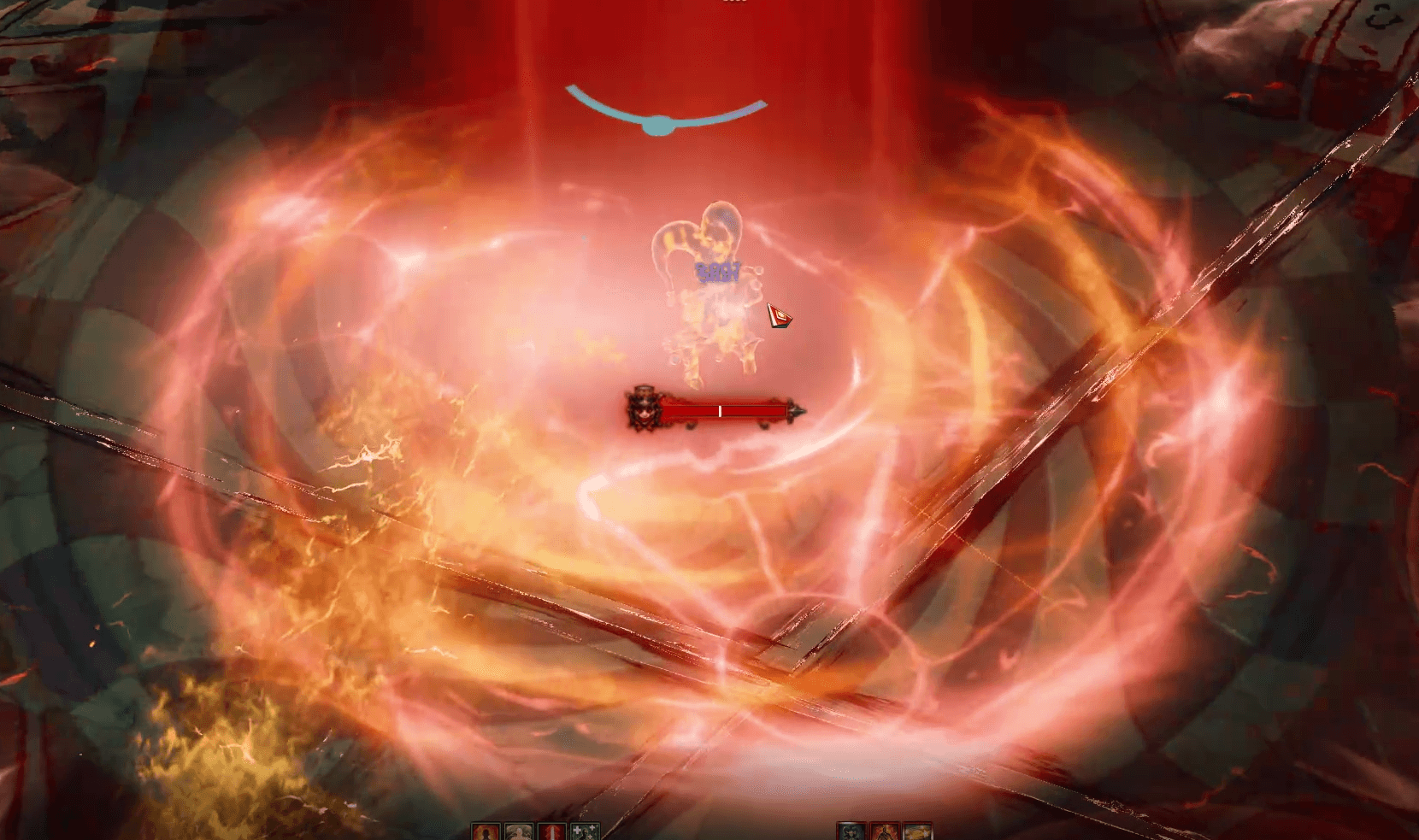 It starts with 2 players with target marks on their head. Fire bombs that leave DoT damage on the ground will be shot at them, so the two players must be ready to run away and dodge.