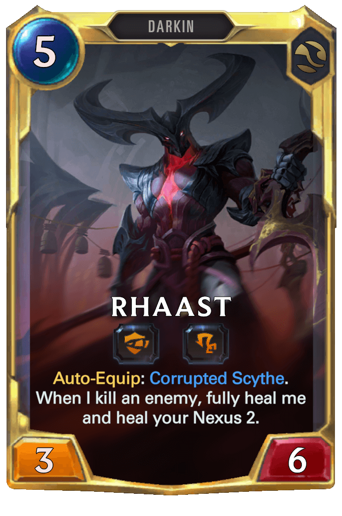 Rhaast is the correct choice 90% of the time, as The Shadow Assassin has really poor synergy with Kayn’s champion spell. The combination of Challenger + Overwhelm already fills a similarly evasive role, as we can always pick off any weak units on board.