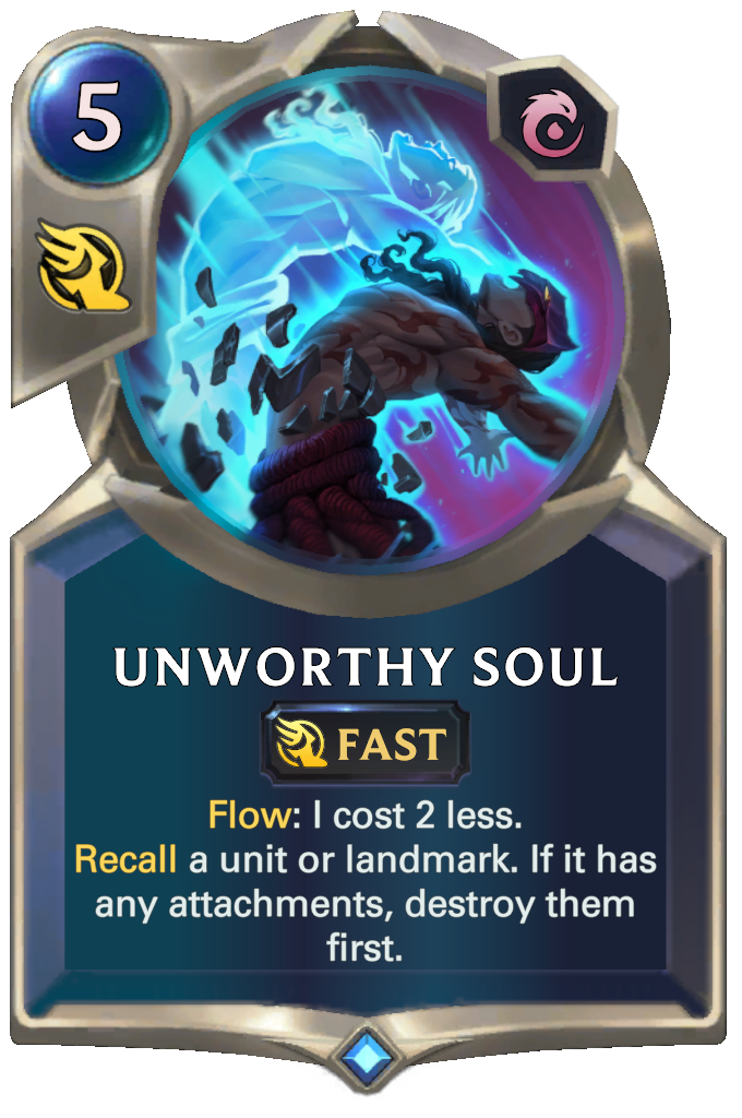 The other Ionian card is a fantastic choice in metas where removing a more costly unit, such as Aatrox is ideal. Unworthy Soul came up so many times in the world’s tournaments and ended up being clutch.