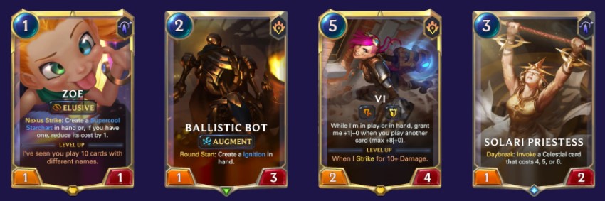 Don’t forget Zoe’s level-up triggers upon “play”, so having spells on the stack is enough to make that final push without them needing to resolve. One final note, don’t get blown out by Hush or Sharpsight.