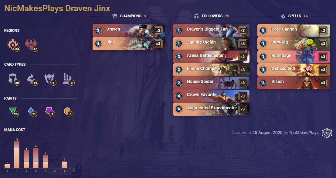 Draven Ezreal has the versatility of being able to adjust the spells in its decklist for the meta as well as having a well-rounded matchup spread.