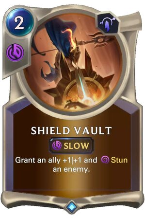Shield Vault allows Pantheon decks to have interaction while utilizing the Fated keyword and leveling Pantheon. This is good because it can shut down opposing pressure such as Aggro, Elusives and Challengers while beefing up your units.