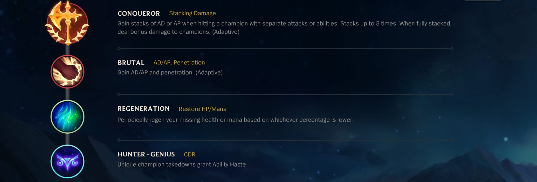 - Hunter – Genius:PASSIVE: Gain 2.5 ability haste. Unique champion takedowns grant 2.5 ability haste up to 15 at 5 stacks.