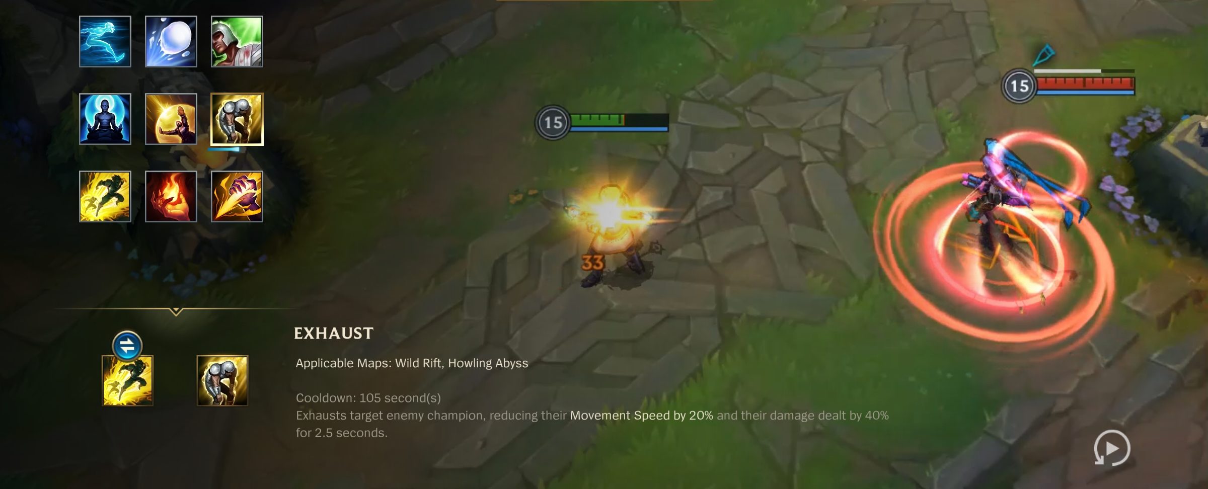 There are not only abilities in League of Legends: Wild Rift but also Summoner Spells. Every player can choose in two Summoner Spells at champ select.