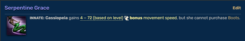 I don’t feel like this is a fair ability right now for Cassiopeia. When we compare her to a lot of the newer champions, or compare her to some of the same champions in her class, she gets out-picked and out-damaged by superior champion kits. The only reason people really pick Cassiopeia is as a hard counter to certain melee matchups.