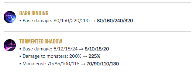 Morgana has been to strong as a support, this change should push he more into the Jungle.