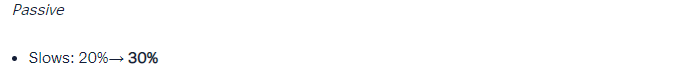 - Ability (3) base damage decreased, but damage to monsters increased.