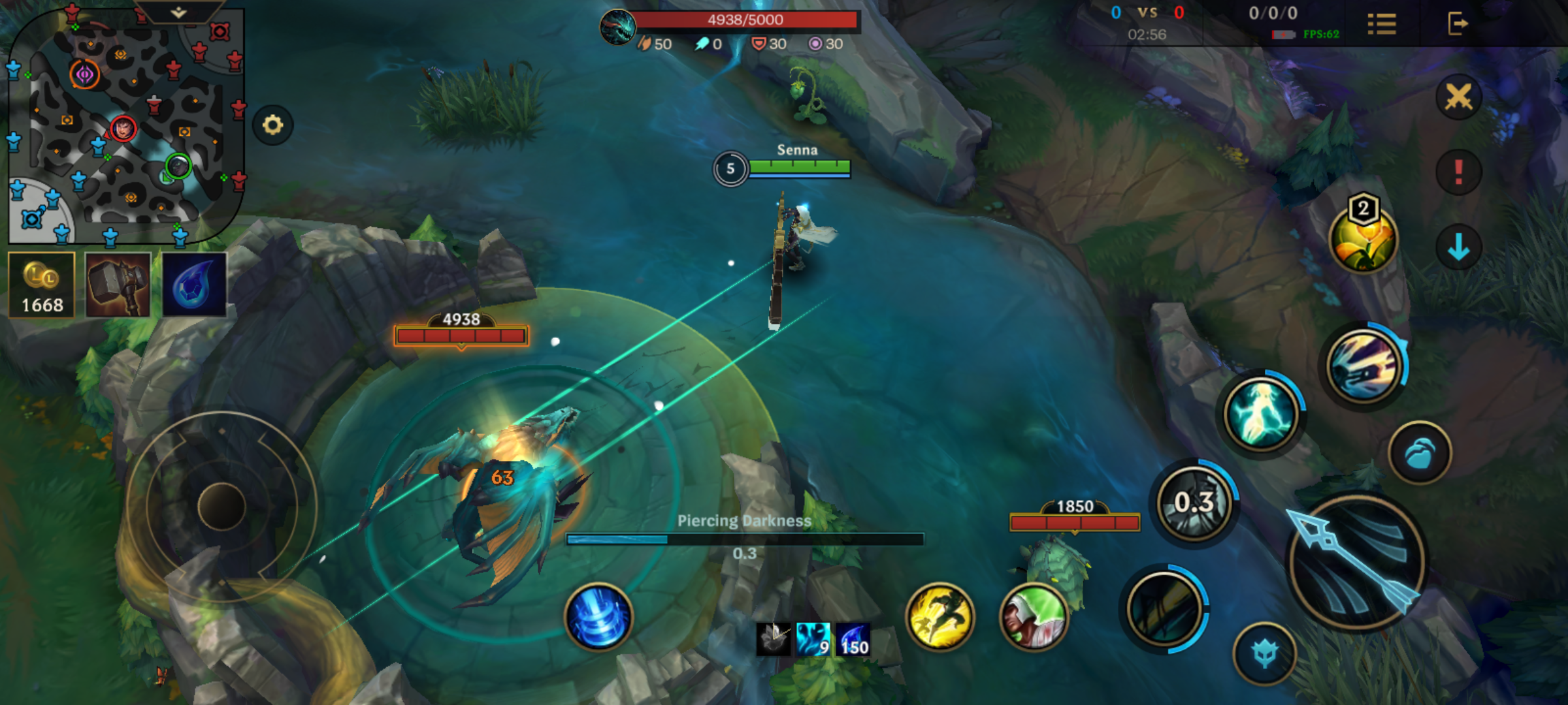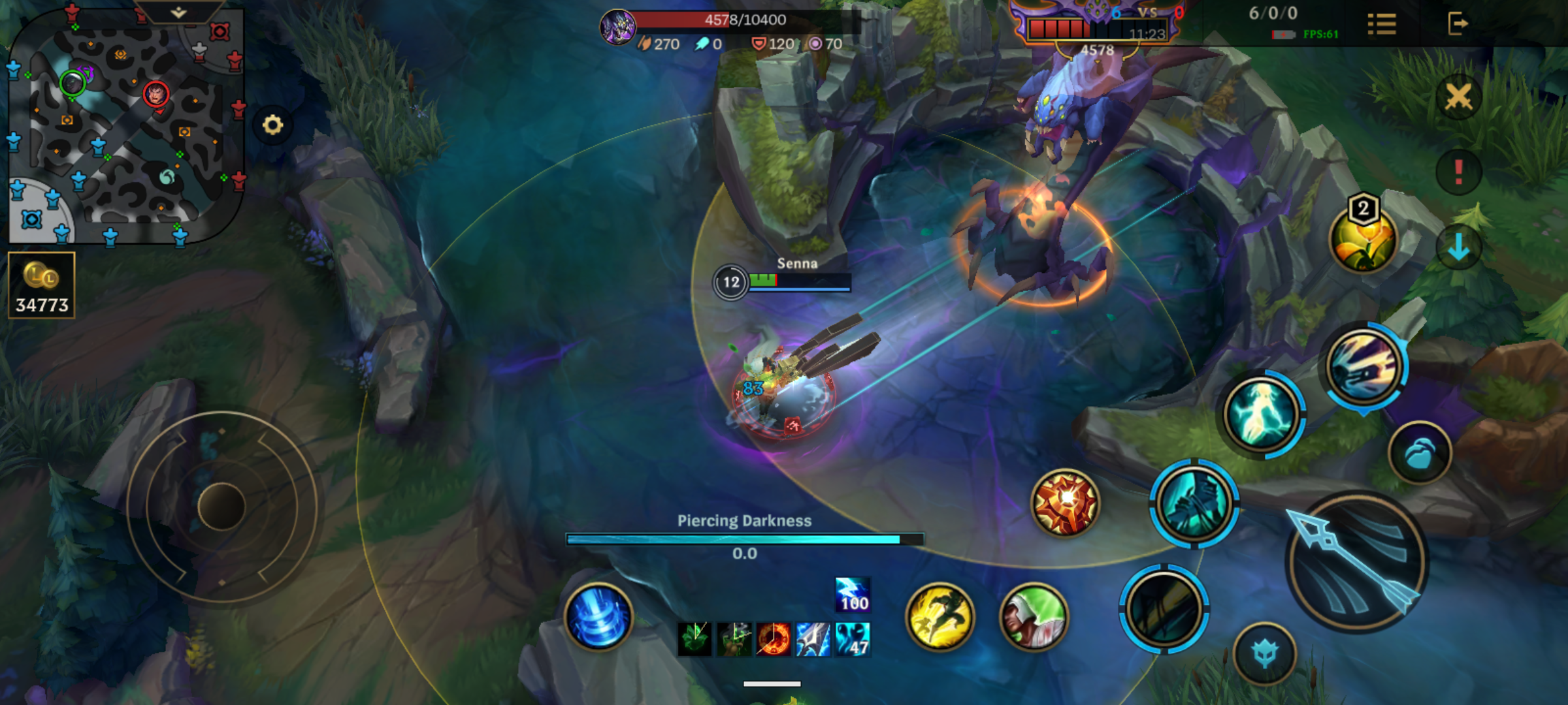 - Ability (1), Piercing Darkness: The cast range of Piercing Darkness matches Senna’s attack range, and its cast time will increase with the attack speed. It can aim at anything and apply a hit effect to the enemy hero.
